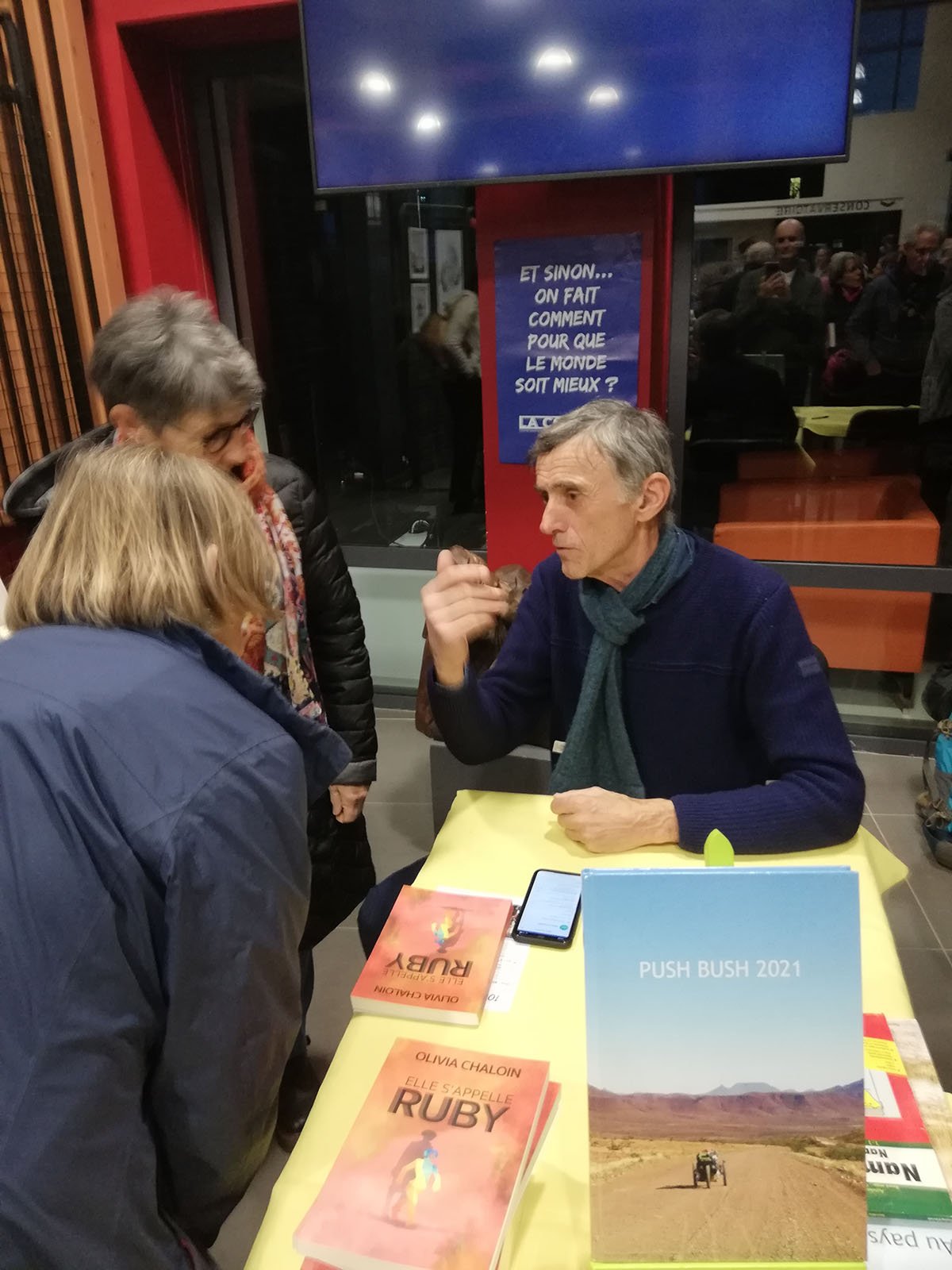 La réussite de l’Escale d’automne repose bien entendu sur la qualité des films proposés et la participation des intervenants qui nous font le plaisir de nous rejoindre. Un grand merci à Cyrille Cornu, à Yves Chaloin et à Aude Labrosse pour nous avoir fait partager leur passion, leur engagement lors d’échanges toujours passionnants avec le public. Merci à Olivia Chaloin qui nous a rejoint en visio pour délivrer un message très positif au gré des anecdotes de son aventure namibienne. Merci à Maëlle Bompas présente à nos côtés avec son expo et son livre « Sur ma planète Japon » (on a même cru voir passer Pikachu !) ainsi qu’à notre partenaire la Librairie de Paris pour la sélection d’ouvrages proposés sur notre espace Livres.
